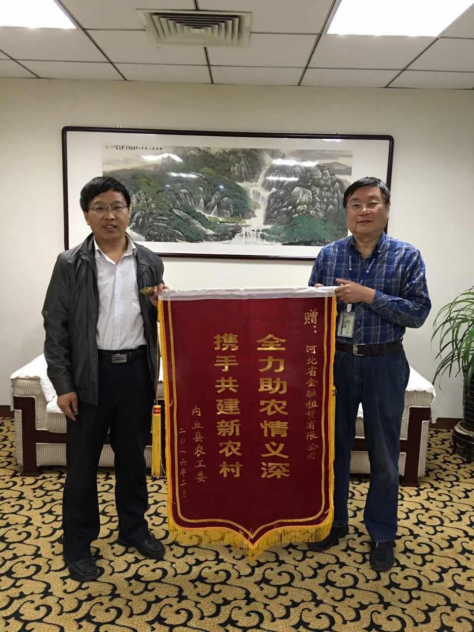 一年來(lái),河北金租駐村工作隊(duì)與孫家坡村的干部群眾打成一片。在省市黨組織部門(mén)的抽查、突查中均未出現(xiàn)漏崗,中秋節(jié)、元旦等假日也堅(jiān)守崗位,受到省國(guó)資委領(lǐng)導(dǎo)、各級(jí)扶貧辦和村民的一致好評(píng)。駐村工作隊(duì)榮獲內(nèi)丘縣扶貧辦、農(nóng)工委頒發(fā)的“2015年度扶貧工作先進(jìn)集體”稱號(hào),工作隊(duì)曹津生榮獲“2015年度扶貧工作先進(jìn)個(gè)人”稱號(hào)。近日,內(nèi)丘縣農(nóng)工委特向公司贈(zèng)送一面錦旗,表達(dá)了“全力助農(nóng)情誼深,攜手共建新農(nóng)村”的感謝之情。