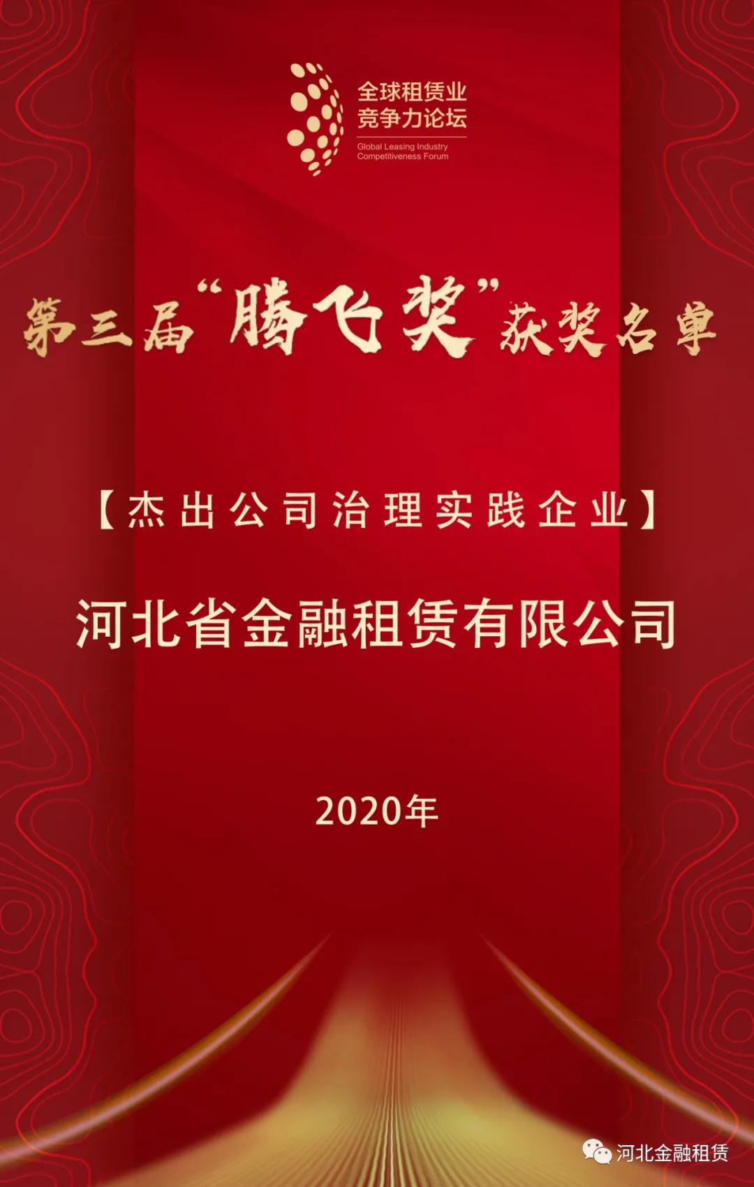 全球租賃業(yè)競爭力論壇峰會(huì)11月4日至5日在天津舉行,近千位國內(nèi)外融資租賃行業(yè)嘉賓齊聚一堂,匯智論道,“聚焦雙循環(huán),謀新十四五”。本次峰會(huì)同時(shí)頒發(fā)第三屆中國融資租賃“騰飛獎(jiǎng)”,河北省金融租賃有限公司榮獲中國融資租賃“杰出公司治理實(shí)踐企業(yè)”榮譽(yù)。
