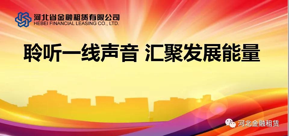日前,河北省金融租賃有限公司(以下簡稱“河北金租”或“公司”)在武漢舉行員工座談會,公司董事長徐敏俊、副總裁李永德等與醫(yī)療健康、工程裝備等業(yè)務(wù)團隊負責(zé)人和一線業(yè)務(wù)經(jīng)理共同座談,在持續(xù)三個多小時的時間里,業(yè)務(wù)經(jīng)理們踴躍發(fā)聲,實事求是提建議,獻計獻策謀發(fā)展,互動交流解疑惑,在面對面的互動中搭建了心與心交流的橋梁。