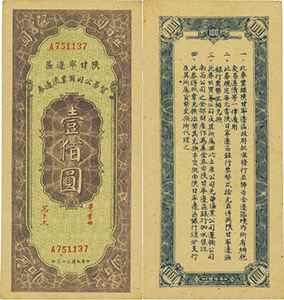 抗日戰(zhàn)爭(zhēng)爆發(fā)后,1937年9月下旬,八路軍第一二零師進(jìn)入晉西北地區(qū),創(chuàng)立了晉西北抗日根據(jù)地,建立了興縣農(nóng)民銀行。到1938年12月,開辟了以大青山為依托的綏西、綏南、綏中三塊游擊根據(jù)地,并逐步同晉西北根據(jù)地連成一片,構(gòu)成晉綏抗日根據(jù)地。1940年5月,以興縣農(nóng)民銀行為基礎(chǔ),成立了晉西北農(nóng)民銀行,后改為西北農(nóng)民銀行,發(fā)行西北農(nóng)民幣,流通于晉綏地區(qū)。后晉綏邊區(qū)與陜甘寧邊區(qū)統(tǒng)一為西北解放區(qū),該行與陜甘寧邊區(qū)銀行合并,統(tǒng)稱西北農(nóng)民銀行,西農(nóng)幣成為整個(gè)西北解放區(qū)統(tǒng)一本位幣。從1940年5月-1948年11月,西北農(nóng)民銀行共發(fā)行貨幣15種面額,26種票樣,約3.8億張,合計(jì)約為6439億元。