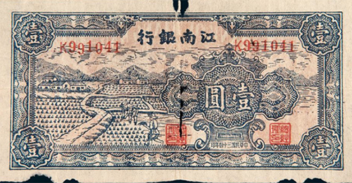 1941年5月,新組建的新四軍第七師正式成立,隨后,七師到安徽皖江地區(qū)開辟了抗日根據(jù)地。為了阻止日偽利用法幣和偽幣掠奪資源,中共中央要求各根據(jù)地要建立獨(dú)立和統(tǒng)一的金融制度。皖中行署根據(jù)中共中央華中局第一次擴(kuò)大會(huì)議精神,于1943年6月,成立大江銀行,大江銀行先后發(fā)行大江幣7種面額、40種版別,約2000萬(wàn)元。