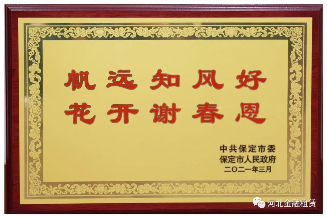 保定市委、市政府在信中寫道:“值此脫貧攻堅取得全面勝利之際,保定市委、市政府代表全市1000萬人民向一直以來關心支持保定經濟發(fā)展并在保定脫貧攻堅事業(yè)中作出突出貢獻的河北省金融租賃有限公司,表示衷心感謝和崇高敬意……”