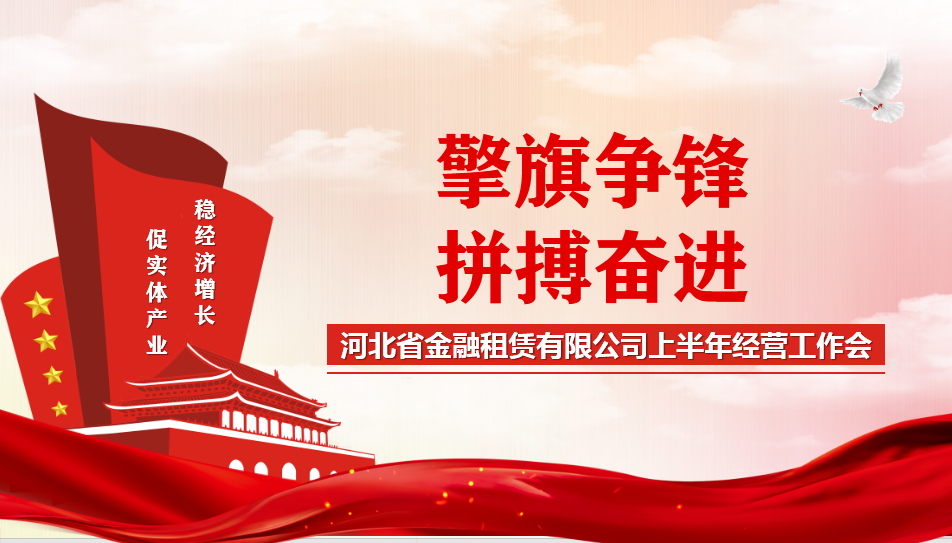擎旗爭鋒,拼搏奮進(jìn)。下半年,河北金租將以釘釘子精神完成各項(xiàng)經(jīng)營任務(wù),在克難奮進(jìn)中推進(jìn)公司高質(zhì)量發(fā)展。同時(shí),履行金融機(jī)構(gòu)的職責(zé)使命,用好各級政府落實(shí)扎實(shí)穩(wěn)住經(jīng)濟(jì)一攬子政策措施,積極作為,優(yōu)化服務(wù),努力惠及產(chǎn)業(yè)客戶,積極服務(wù)實(shí)體經(jīng)濟(jì)。