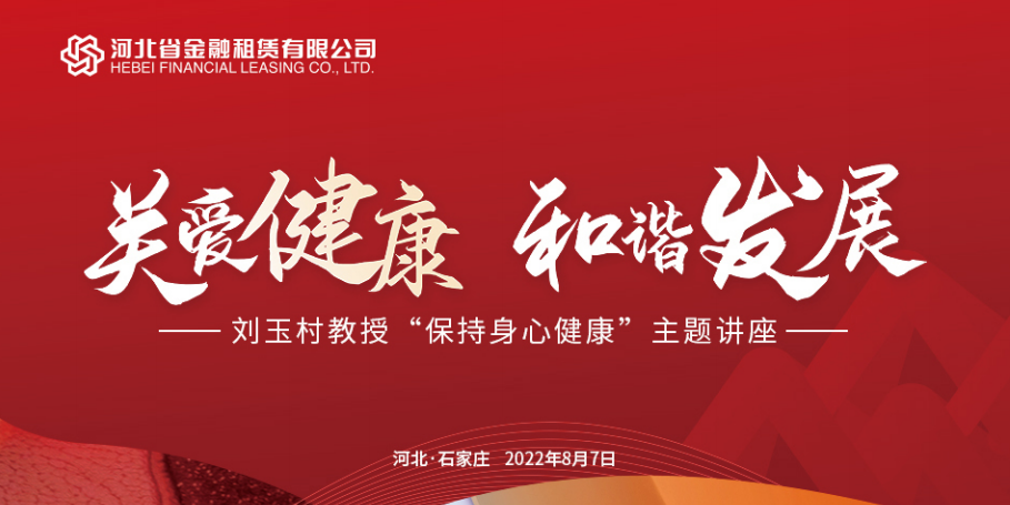 為進一步提升員工健康素養(yǎng),保障員工身心健康,8月7日,河北省金融租賃有限公司(以下簡稱“河北金租”)舉辦身心健康專題講座,邀請原北京大學黨委常務副書記、醫(yī)學部黨委書記劉玉村教授為公司干部員工現場講課。